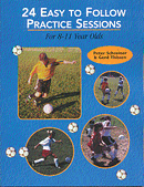 Complete practice plans for young players organized in a neat and easily understandable way. Skills covered include controlling, dribbling, passing, juggling, shooting, coordination and goalkeeping. 88 pages.